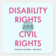 Image avec le texte "Les droits des personnes handicapées sont des droits civils" en rose et bleu, avec "le réseau des femmes autistes" en dessous de celui en gris foncé. Arrière - plan bleu pâle.