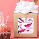 Maquillage design avec des rouges à lèvres rose brillant et des lèvres féminines roses rubis sur un arrière - plan blanc. Cet autocollant élégant est parfait pour les esthéticiennes, les cosmétologistes, les salons de beauté et d'autres professions similaires.