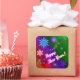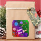 sticker carré avec une image de jolies flocons de neige bleus, fuchsia et verte sur un arc-en-ciel arrière - plan de lumières de vacances et un sentiment de vacances blanc. Voir invitation carré, confettis et papier d'emballage correspondants. Voir la collection entière de Stickers du Nouvel An sous la catégorie CARDS & STICKERS dans la section VACANCES.