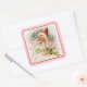 Un autocollant carré pour accompagner notre invitation "Saint Nicolas" avec une belle image vintage de Saint Nicolas au milieu de rubans saints et roses sur un arrière - plan rose. Bordure rouge. Voir invitation, enveloppe, confetti, ballotin, étiquette de faveur, sacs cadeaux, étiquette et papier d'emballage. Voir l'ensemble de la collection Holiday Sticker dans les INVITATIONS | Section Stickers & Étiquettes.