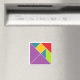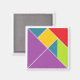 L'ancien puzzle de tangram chinois se compose de 7 formes géométriques : 2 grands triangles, 1 triangle moyen, 2 petits triangles, 1 carré et 1 parallélogramme. Le puzzle est montré complété pour former un carré coloré. J'espère que vous apprécierez cet aimant tangram.