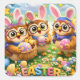 Brighten up your season with this adorable sticker sheet featuring a delightful collection of characters including a charming owl and it's prehistoric pals all dressed in fuzzy bunny ears and surrounded by colourful spring eggs. These whimsical high-quality stickers are perfect for decorating scrapbook planners Easter baskets and party favours share the joy of spring with these Kawaii animal designs that kids and adult adults are like