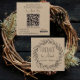 Vignes de couronnes faites main | Carte de visite artisanal Kraft — Caractéristiques des vignes à feuilles formées en une couronne sur l'avant de la carte, ainsi que votre nom d'entreprise et votre adresse de site Web. À l'arrière est un code QR personnalisable avec vos autres détails d'affaires. En bas à droite, vous trouverez une variété d'icônes de médias sociaux : vous pouvez les utiliser à cette fin, les échanger contre des icônes de votre choix ou les supprimer complètement. Toutes les couleurs, le texte et les arrière - plans sont modifiables.