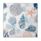 Abstract nautical pattern ceramic tile with starfish, seashell, and palm leaves in distressed blue and peach tones on a clean white background. Modern coastal summer aesthetic with a textured vintage feel. Ideal for beach lovers, ocean enthusiasts, coastal lifestyle fans, and summer trend seekers.