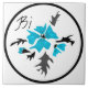 Carreau Abstrait bleu moderne fleur gris noir feuille prin