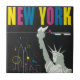 Affiche de voyage d'époque pour le vol Northwest Airlines à New York, montrant Statue de la Liberté et stylisé New York City skyline.