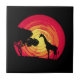 African sunset illustration with red grunge sun, girafe and tree silhouette decoration on black background. C'est possible to change the background color and to add different one to the design with your choice.