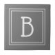 Monogramme personnalisé moderne & élégant ajouté à la décoration chic simple style maison de ferme carrelage en céramique motif en gris moyen et blanc. Super idée cadeau ! Customisez facilement avec l'outil de design pour en faire votre propre ! Contactez-moi à l'adresse beachpausedesigns@gmail.com si vous avez besoin d'aide ou si vous avez des questions à ce sujet ou à l'un de nos modèles. Autres options de conception et couleurs disponibles