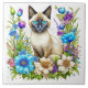 Carreau Ai Aquarelle Siamese Chat en Fleurs