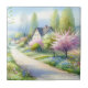 Ce paysage à l'aquarelle douce évoque un rêve serein de cottagecore, où un chemin sinueux serpente à travers des prairies fleuries vers des maisons paisibles de campagne. Les coups de pinceau aériens et les lavis délicats créent une atmosphère légère et fantaisiste, remplie d'arbres en fleurs, de fleurs sauvages pastel et de verdure printanière fraîche. Les roses tendres, les blancs crémeux, les bleus ciel et les jaunes doux se fondent sans heurts, donnant à la scène une qualité enchantée de livre d'images. La composition est calme et invitante, capturant la romance de la vie rurale lente et la beauté silencieuse de la nature qui s'éveille. Avec son charme inspiré du folklore et son atmosphère sereine, l'œuvre d'art rayonne de chaleur, de nostalgie et d'un sentiment d'évasion pais