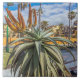 Une belle photo d'un plante Aloe Vera et des fleurs imprimées sur un carrelage en céramique.