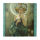Tuile d'Alphonse Mucha Clair De Lune. Peinture allégorique de lithographie. Alphonse Mucha est célèbre pour ses annonces et affiches de nouveau d'art comportant de belles jeunes femmes entourées par les fleurs et l'ornement complexe. Clair de Lune ou étoile du soir comporte une jeune femme magnifique portant une robe étoilée. Elle porte des fleurs dans ses cheveux brun clair pendant que le croissant de lune rougeoie derrière elle. Un grand cadeau pour des fans d'Alphonse Mucha, de nouveau d'art, et de posters vintage.
