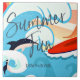 Amusez-Vous En Été, En Bas. Design fantasque dans des couleurs vives, tout ce qui est australien pour le plaisir de la plage : surf, soleil, palmiers, kangourous, plage de sable, et un grand sourire!