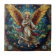 Cette oeuvre en vitrail est un exquis étalage d'artisanat et de couleurs. La figure centrale est un ange gracieux, rayonnant de chaleur et de divinité. Ses grandes ailes vibrantes sont riches en tons jaunes et oranges, créant un contraste saisissant avec les bleus et verts glacières de l'arrière - plan. L'ange porte des robes fluides, finement conçues en blanc, beige et or, donnant à la figure une présence éthérée et majestueuse. Un halo radieux encercle la tête de l’ange, mettant l’accent sur sa nature céleste. Autour de l'ange sont magnifiquement rendus détails : étoiles éparpillées sur fond bleu et vert tourbillonnant, oiseaux qui s'envolent à proximité, et motifs floraux délicats entrelacés dans le design. Ces éléments renforcent la sérénité et l'ambiance paradisiaque de la pièce, en faisant une oeuvre d'art vraiment captivante.