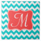 Carreau Aqua Coral Chevron Monogramme moderne