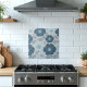 Carrelage en céramique florale couleur argent bleu avec un design botanique moderne et élégant et une touche de charme tropical, parfait pour des vacances, printemps, automne, automne ou décoration maison d'hiver.