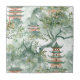Ce carrelage en céramique présente une pagode de style asiatique traditionnelle, rendue par de délicates touches d'aquarelle, au milieu d'un paysage verdoyant. Le design s'inspire de l'élégance architecturale que l'on retrouve au Japon, en Chine, en Corée et au Vietnam, et qui rend la sérénité de la nature mêlée au patrimoine culturel. Le mélange harmonieux de teintes verdoyantes et de détails complexes évoque un sentiment de tranquillité et d'intemporalité, ce qui en fait une pièce polyvalente pour diverses applications artistiques.