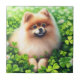 Tuile en céramique avec un adorable chien poméranien orange posant un champ de trèfle avec quelques shamrocks. Un joli cadeau de la Saint Patrick pour les propriétaires et amateurs de pom de Poméranie.