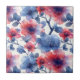 Carreau Aquarelle rouge, fleurs bleues sur le blanc