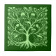 Carrelage en céramique dans un stylisé, branche et fleur, arbre de vie design en vert clair sur un arrière - plan vert foncé, pin