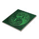 Ce yang vert stylisé de yin comporte un arbre tordu s'élevant du centre de la conception. Les branches complexes qui avancent au dessus du motif sont une image retournée des racines qui accrochent ci-dessous. Les textures en pierre approximatives remplissent cette conception renversante qui est une belle représentation de l'équilibre de la nature.