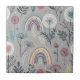 Whimsical Rainbow and Botanical Ceramic Tile - Jouer sans couture motif avec arc-en-ciel, pandelions et fleurs sauvages dans des tons pastel doux rose, turquoise et crème sur un arrière - plan gris apaisant. Idéal pour les amoureux de la nature, les amateurs de boho et ceux qui aiment les motifs gais et stimulants. Idéal pour le printemps, l'été, les anniversaires et les évènements à thème fantaisiste.