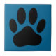 Pawprint de chien de dessin animé en noir. Arrière - plan bleu. Carrelage décoratif pour les maisons et les entreprises comme les animaleries. Idée cadeau pour les amoureux de les chiens.