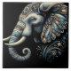 Un éléphant au design complexe se dresse majestueusement, orné de beaux motifs floraux. La lumière douce de l'aube renforce son élégance, symbolisant la force et la beauté dans la nature.