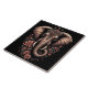 Un éléphant au design complexe se dresse majestueusement, orné de beaux motifs floraux. La lumière douce de l'aube renforce son élégance, symbolisant la force et la beauté dans la nature.