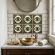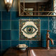 This striking ceramic tile features a captivating Art Deco design of an all-seeing eye, rendered in rich shades of green, blue, and gold. The intricate geometric patterns surrounding the eye evoke the glamour and sophistication of the Art Deco era, while the eye itself symbolizes protection, wisdom, and spiritual awareness. Perfect for adding a touch of mystique and vintage charm to any space, this tile can be used for backsplashes, accent walls, or as a decorative piece. The detailed craftsmanship and luxurious color palette make it a unique addition to your home decor.