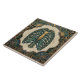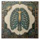 Embrace the unique and the artistic with this striking ceramic tile featuring a detailed illustration of a green ribcage encased within an ornate Art Deco sunburst frame. The vibrant green and gold hues are set against a cream background, creating a visually captivating piece that blends anatomical imagery with sophisticated geometric patterns. This tile is perfect for adding a touch of gothic elegance or a unique statement to any wall, fireplace, or backsplash. Its intricate design, inspired by the Art Deco era, offers a timeless appeal that will surely spark conversation and elevate your decor. Imagine this piece as a focal point in your living room, kitchen, or bathroom, bringing an element of edgy sophistication.
