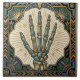 Embrace the unique with this striking Art Deco ceramic tile, featuring a meticulously detailed skeleton hand in shades of green and gold. The intricate geometric border, reminiscent of the Roaring Twenties, adds a touch of vintage elegance to any space. This artistic tile is perfect for adding a conversation-starting element to your kitchen backsplash, bathroom, or as a decorative accent piece. The combination of the skeletal motif and the opulent Art Deco style creates a sophisticated yet edgy aesthetic that is sure to impress.