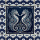 Carreau Art Deco Two Seahorses Mother of Pearl Blue