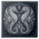 This stunning ceramic tile features a captivating Art Deco design showcasing two majestic seahorses rendered in a lustrous mother of pearl effect against a deep blue background. The intricate linework and symmetrical composition evoke a sense of timeless elegance and oceanic wonder. Each seahorse is meticulously detailed with a mosaic-like pattern, reflecting light beautifully and adding a luxurious shimmer. The surrounding ornamental details, reminiscent of vintage aesthetics, enhance the overall sophistication, making this tile a unique statement piece for any home decor. Perfect for creating a focal point in bathrooms, kitchens, or as an artistic accent wall, this tile brings the enchantment of the sea with a touch of refined glamour.