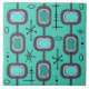 Cette ère atomique, dans le style de l'art abstrait moderne du milieu du siècle, a des cercles, des lignes et des étoiles Spoutnik. Pour les amateurs de design kitsch du milieu du siècle. Aquamarine bleu turquoise vert.