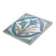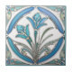 Style Art Nouveau Lys abstrait symétrique en bleu et turquoise sur un arrière - plan aqua vert géométrique. Elégante salle de bain artistique carrelage au mur.