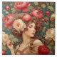 PERSÉPHONE. Belle carreaux en céramique avec une femme entourée de pivoines et de grenades. Art Nouveau vintage Inspiré. Design d'art génératif.