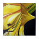 avec un design original de la peinture aquarelle de la fleur de lys jaune et dorée de Sacha Grossel. Ce design botanique de pétales de lys jaunes dorés contre un arrière - plan noir et foncé est abstrait et dramatique. Ce design floral montre la fleur en gros plan, macro et les couleurs vives et vives en font un design artistique, inhabituel, abstrait.