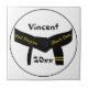 Customisez l'unique tuile de ceinture noire 2e degré Martial Arts avec un nom personnel et une année pour commémorer quand votre artiste martiale est devenu un second dan. Une tuile d'arts martiaux fait une idée cadeau de gardien unique et personnalisée pour un test de promotion de ceinture noire, anniversaire ou vacances. Ajoutez un cadre pour créer un trivet élégant pour votre table de cuisine ! Cette tuile de sport d'arts martiaux 2nd Dan personnalisée comprend une numériquement photo améliorée d'une ceinture noire avec deux barres d'or. Convient à tous les arts martiaux y compris le karaté, taekwondo, kung fu, judo et ju jitsu.