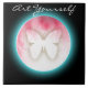 Butterfly Bubbles is a digital design with pink and white fire, bubbles in a circle with a cut out butterfly shape and glowing light blue outer edge.