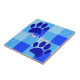 Empreintes de pattes de chien de dessin en bleu bébé sur arrière - plan motif bleu plaid. Carrelage décoratif pour les maisons et les entreprises comme les animaleries. Modifiez le nom du chien pour la personnalisation. Idée cadeau pour les amoureux de les chiens.