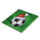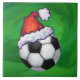 Bal de football festif dans un chapeau de Santa sur des ornements verts, des cadeaux, et des décorations de vacances amusantes présentent notre art original d'un ballon de football noir et blanc tout décoré pour les vacances avec un chapeau de Père Noël rouge contre un arrière - plan vert avec notre texture de brosse sèche. Cette boule de sport décorée de vacances est parfaite pour tous ceux qui aiment le sport et la décoration pour les vacances. Tout est amusant et jeux au ITD Sports Center.