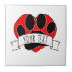 Style de dessin animé mignon empreinte de patte de chien, cœur rouge et bannière. Carreaux en céramique décoratifs personnalisés.