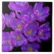 Carrelage en céramique qui présente une photo de belles fleurs de Crocus mauve de printemps dressées contre un arrière - plan noir contrasté. Un superbe design floral ! Sélectionnez votre taille de tuile. Fait une grande cuisine trivet!