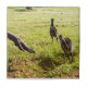 Les images sont trois emus de bébé floues avec un grand pied d'emu entrant dans le cadre