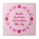 Cette tuile impressionnante présente l'image art numérique d'un groupe de fleurs et de papillons, chacun d'une nuance rose pour représenter une petite fille. Les fleurs comprennent Dahlias, nénuphars, ne m'oubliez pas et Chrysanthemums. Les fleurs et les papillons sont disposés en cercle et il y a du texte personnalisé dans le cercle pour que vous puissiez le personnaliser comme vous voulez, ce design parfait pour révéler le sexe du bébé, pour un Baby shower ou pour célébrer un nouveau-né fille.