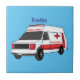 Cette joyeuse ambulance rouge est en route pour aider ! Dessiné dans un style de dessin animé amusant.