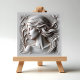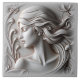 Une description très détaillée d'une femme. Ses cheveux coulent dans des vagues souples et complexes, créant un sentiment de mouvement et de fluidité. La teinte douce donne à la pièce une qualité éthérée, presque surnaturelle, car la lumière se réfléchit doucement hors de la surface, projetant des ombres subtiles qui mettent en valeur l'art du design. Les bords de la tuile s'estompent, encadrant la scène avec une couleur propre et neutre. L'ensemble est à la fois serein et saisissant, mêlant beauté classique et artisanat moderne.