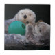 Carrelage en céramique avec l'image photo de deux loutres de mer très mignonnes et ludiques avec un jouet à bille. Sélectionnez votre taille de tuile. Fait une grande cuisine trivet!