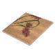 Large 6"x 6" tiles with a beautiful berry pattern, green leaves, and stems on a tan background with hatch lines.